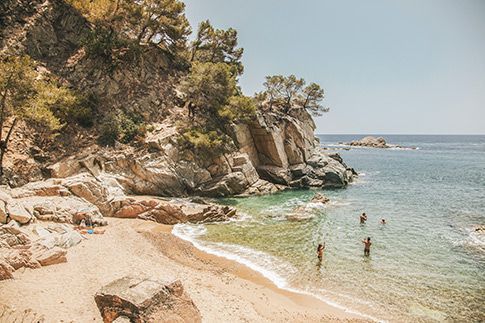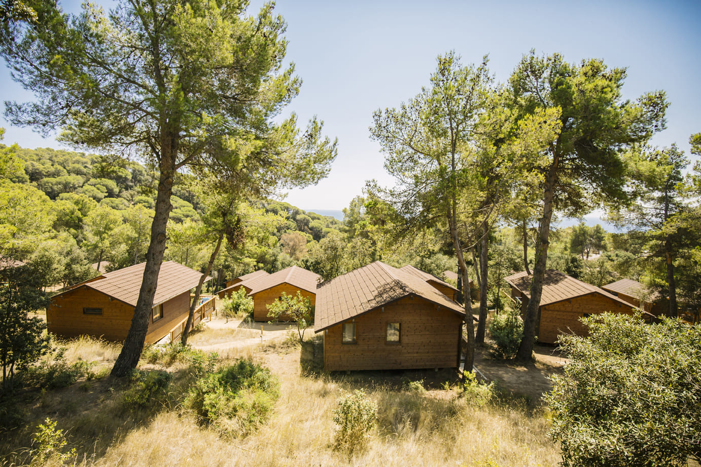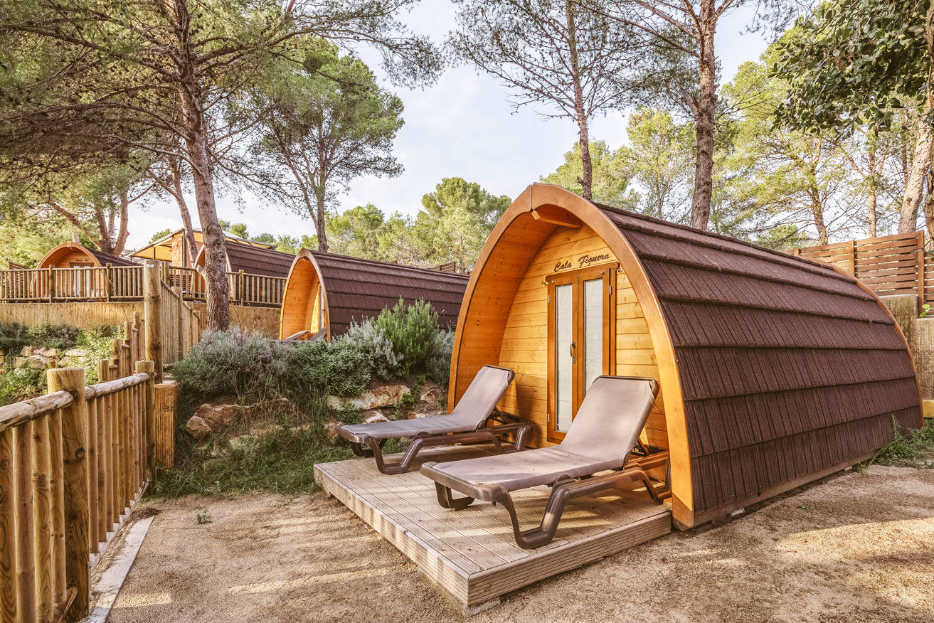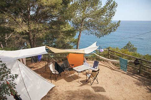 Camping Cala Llevadó, since 1959 in direct contact with nature among the green forest and the blue sea. If you think of sea and mountains, choose Camping Cala Llevadó, 3 km south of Tossa de Mar (Costa Brava, Girona). The original meaning and authentic campsite in the middle of nature. Isolated and independent pitches with sea view. 4 beaches with clear water (one is nudist), surrounded by pine trees. Family atmosphere. Picturesque landscape by the sea. 70 wooden BUNGALOWS for couples and families from 3 to 6 people. 300 tent pitches. 200 caravan pitches. This is an ECO Friendly Camping with ECOlogical Bungalows, with a special care of the environment; management measures of waste and natural resources; green building; reducing energy consumption and minimizing environmental impact.