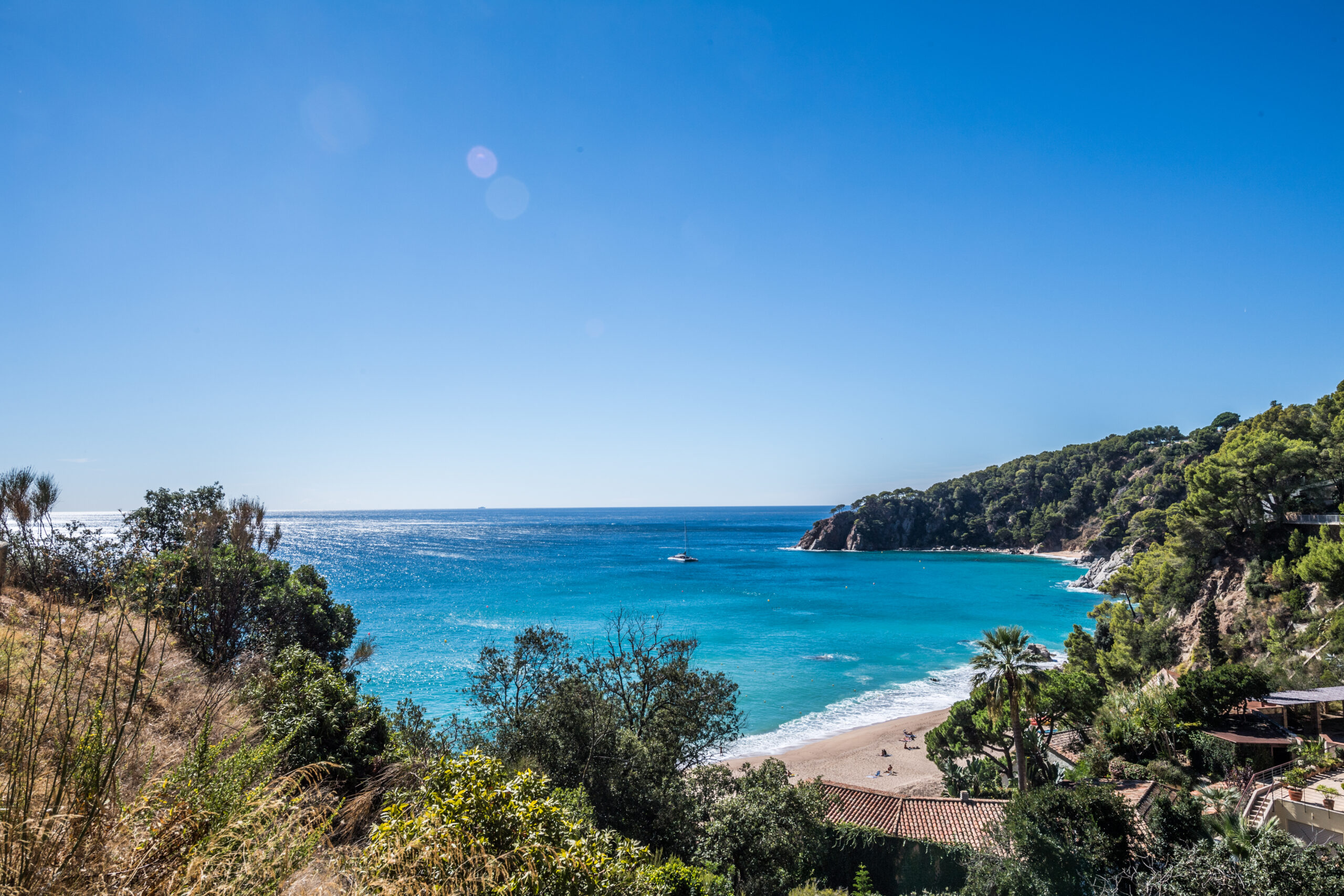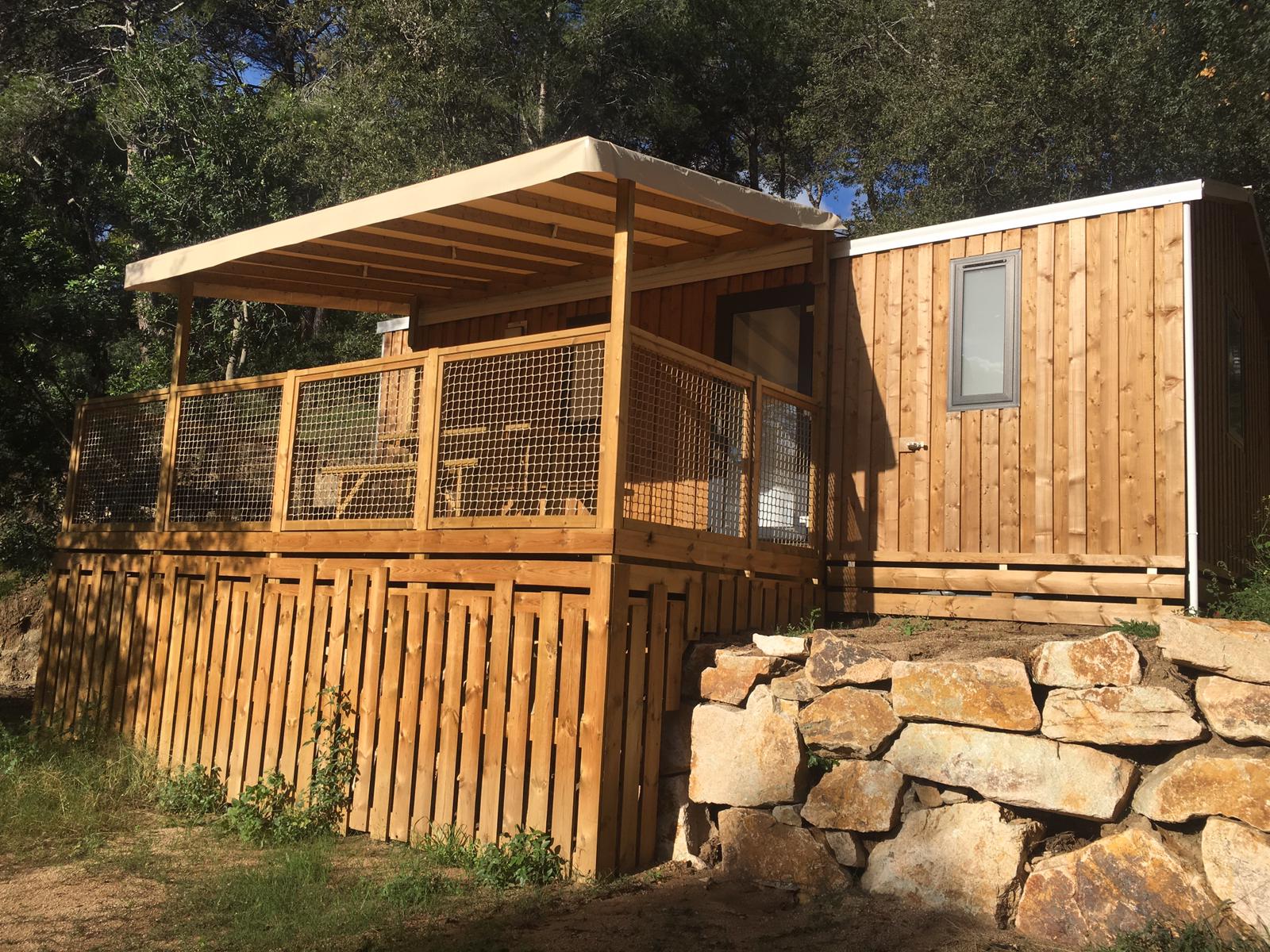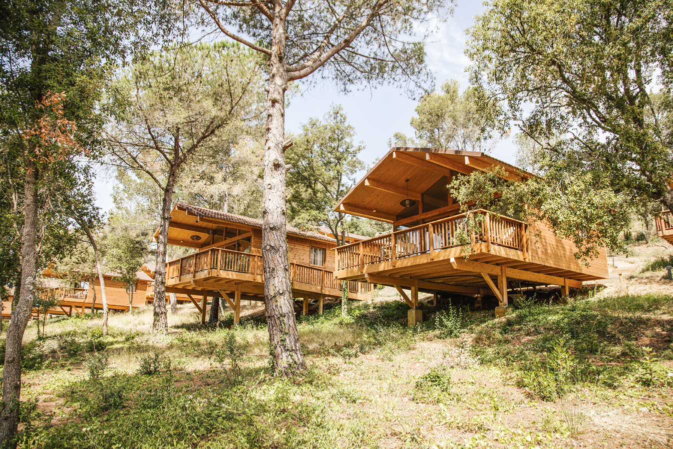 Camping Cala Llevadó, since 1959 in direct contact with nature among the green forest and the blue sea. If you think of sea and mountains, choose Camping Cala Llevadó, 3 km south of Tossa de Mar (Costa Brava, Girona). The original meaning and authentic campsite in the middle of nature. Isolated and independent pitches with sea view. 4 beaches with clear water (one is nudist), surrounded by pine trees. Family atmosphere. Picturesque landscape by the sea. 70 wooden BUNGALOWS for couples and families from 3 to 6 people. 300 tent pitches. 200 caravan pitches. This is an ECO Friendly Camping with ECOlogical Bungalows, with a special care of the environment; management measures of waste and natural resources; green building; reducing energy consumption and minimizing environmental impact.