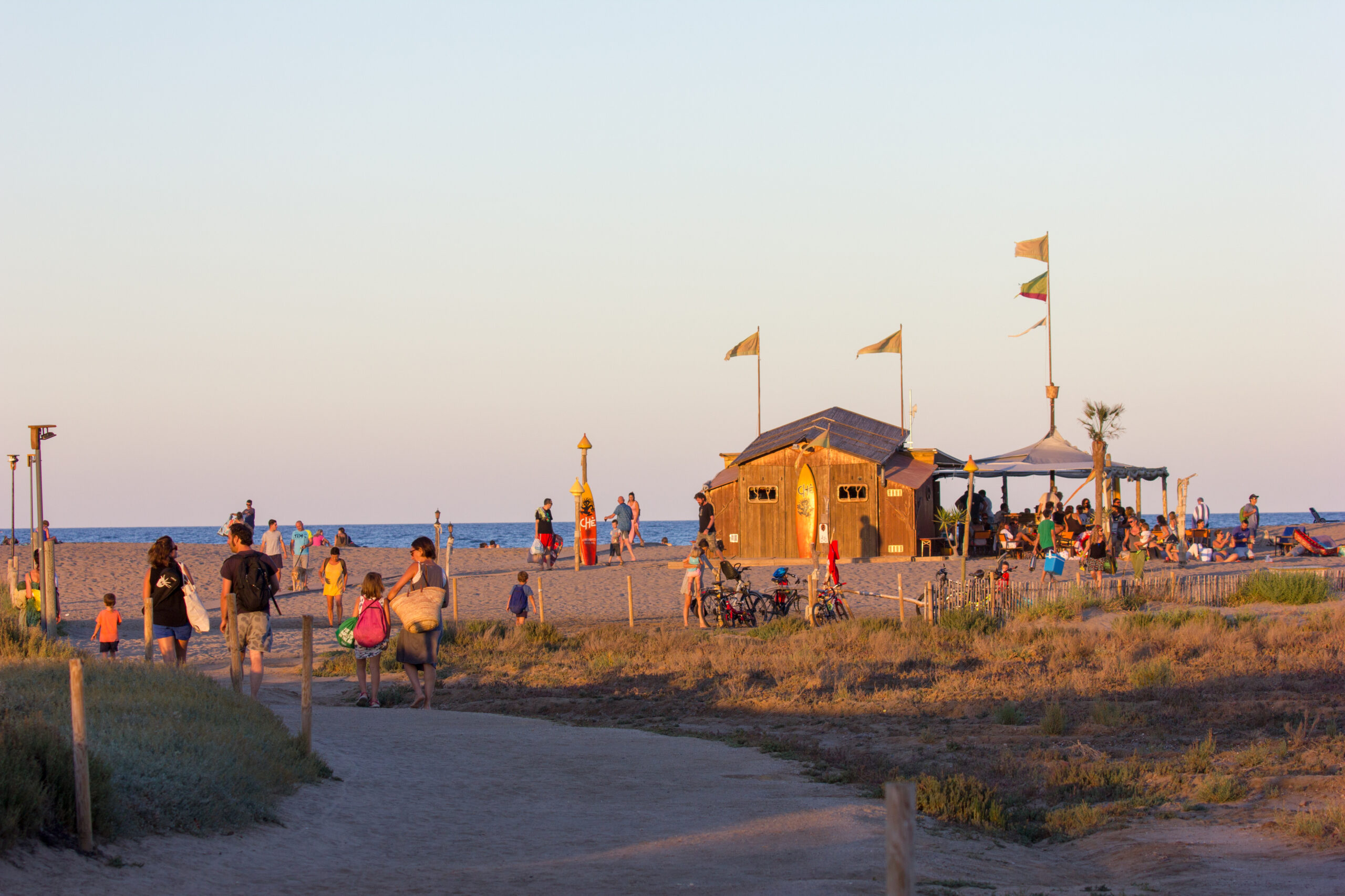 Las Palmeras is a small, very quiet and comfortable campsite on the Costa Brava, where we are sure our clients will have an unforgettable stay. The facilities are designed especially families minded, where you will find everything necessary to make your stay enjoyable. We have a restaurant serving Mediterranean cuisine, Wi-Fi, activities for all ages, heated swimming pool, etc. Open from the first until the last day of the season. Another attraction of our campsite is that it’s situated next to the Natural Park of Aiguamolls de l’Empordà, a unique area where you can see the fauna and nature of this region. We are just a kilometre from the small, traditionally agricultural village of Sant Pere Pescador, far from the tourist crowds. At 250 meters is a long sandy beach with shallow waters and monitored by lifeguards during the summer months which makes it really safe for children. You will find Beach bars for eating or having drinks during the day or to enjoy the nightlife scene. A privileged location for practising Kitesurfing and windsurfing, with schools for those who wish to start practising these sports.